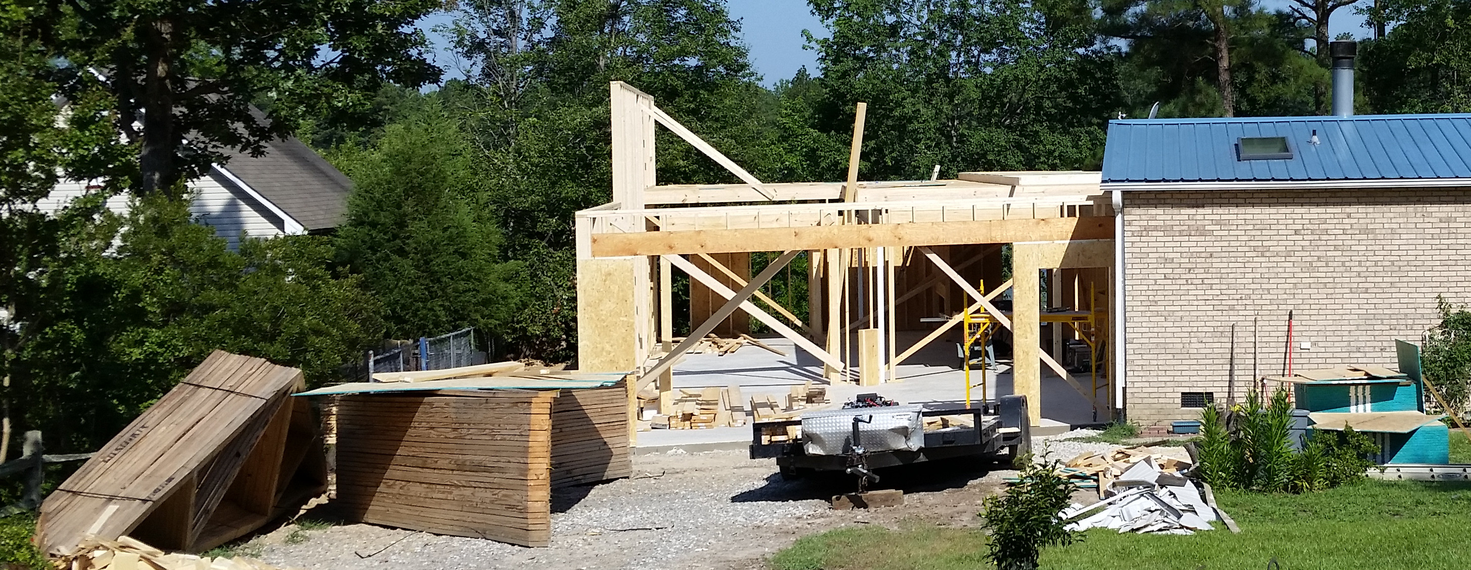 (You can see the chalk line I used of locate the intersection of the shop and garage wall.) Unfortunately I did not take any pictures of the beam installation.