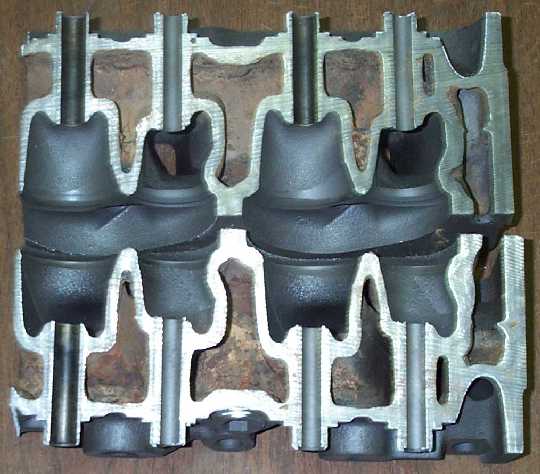These cross sectional cuts were made to see what the porting possibilities were for these heads. I hope these photos show clearly the similarities and differences. Your feedback is welcome but if you disagree tell me why. I intend to update this with your comments even if they disagree with mine and may delete my comment and use yours, if yours seems more useful.
